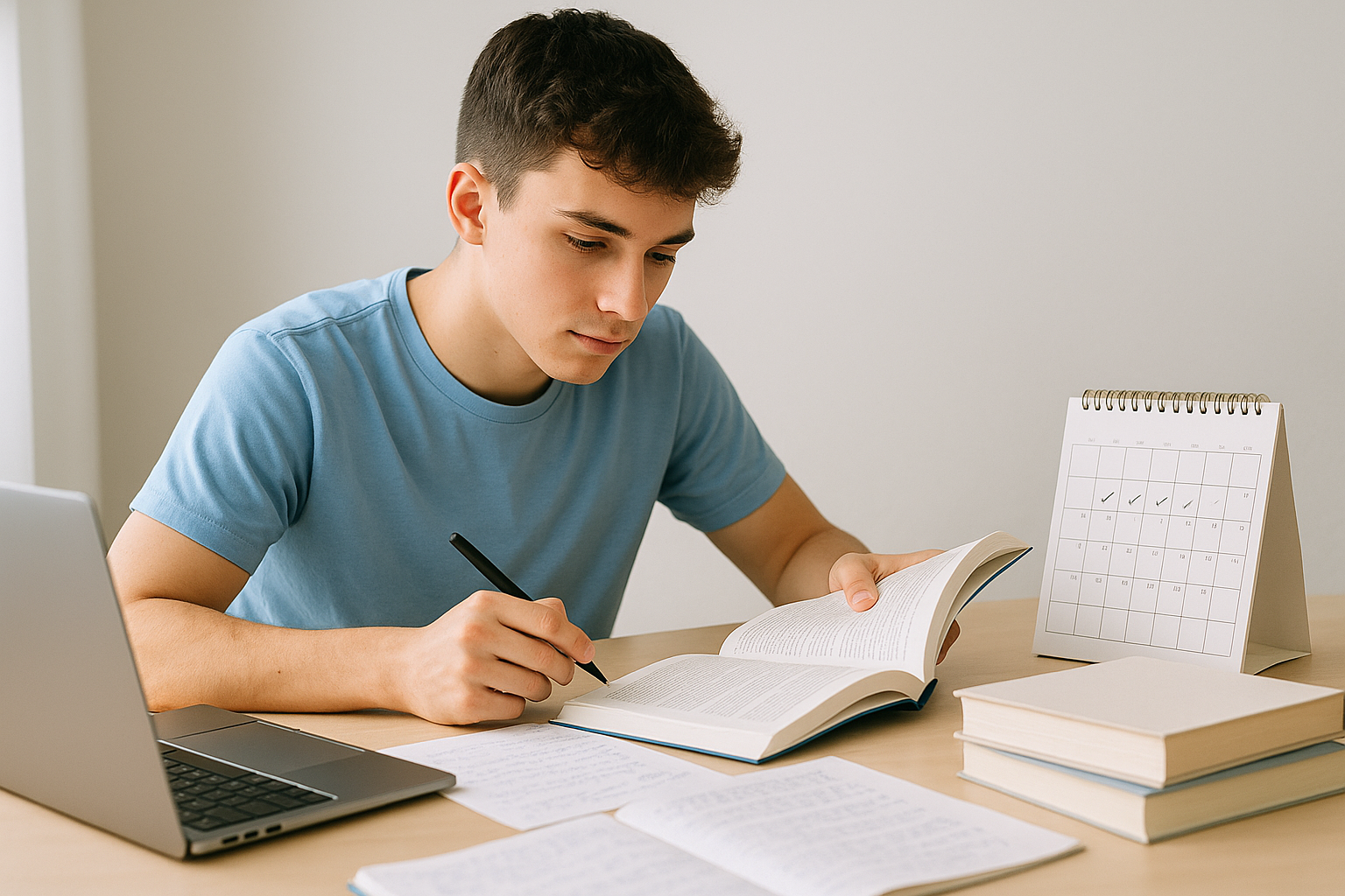 Plane genügend Zeit zum Lernen ein. Teile die Themen in kleine Abschnitte auf und setze dir realistische Ziele. So bleibst du motiviert und verlierst nicht den Überblick. -
